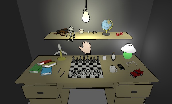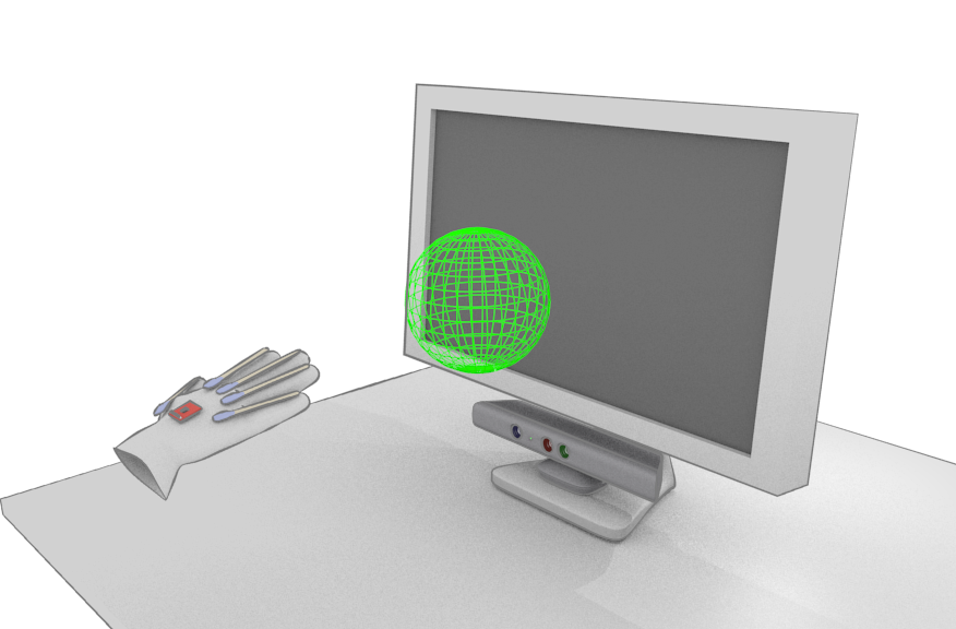 Motion of the user’s hand and head are tracked by a kinect depth sensor camera.